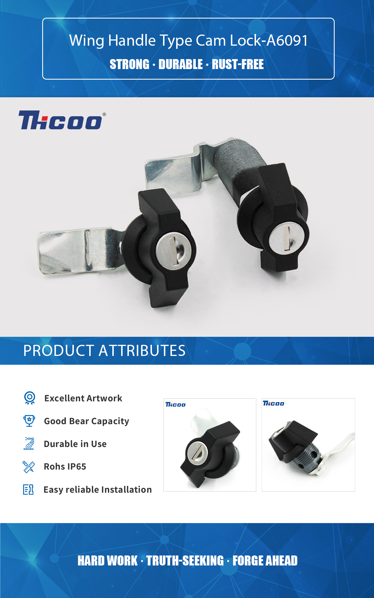 ما آزمایشگاه آزمایش خود و تجهیزات بازرسی پیشرفته و کامل داریم که می تواند کیفیت محصولات را تضمین کند. Wing Handle Type Cam Lock-A6091 یک قفل بادامک با بادامک 6 پین و لیوان 3 پین است. در رنگ های مختلف موجود است و با 1 سال گارانتی سازنده عرضه می شود. نوع دسته: Cam Lock