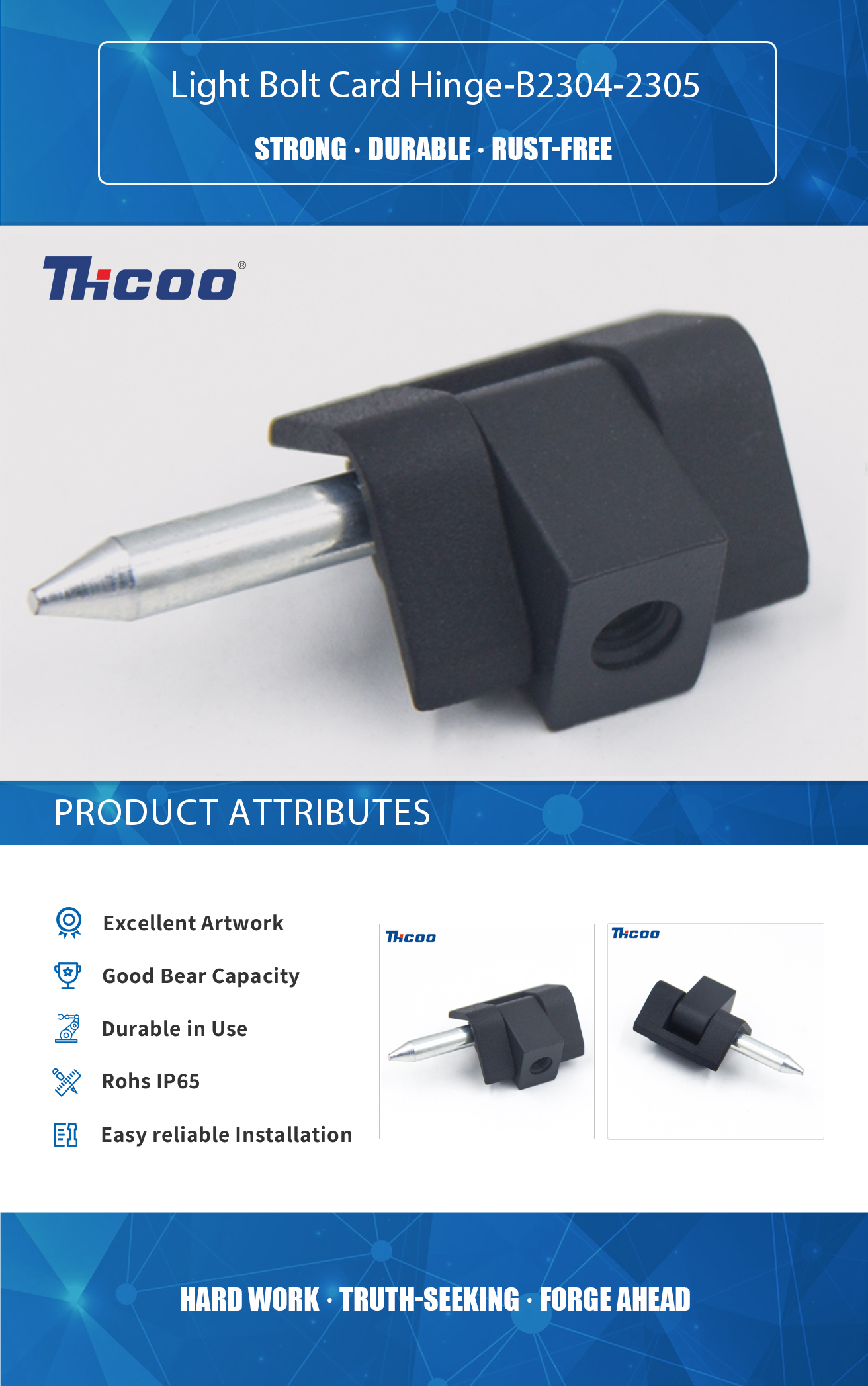 ما آزمایشگاه آزمایش خود و تجهیزات بازرسی پیشرفته و کامل داریم که می تواند کیفیت محصولات را تضمین کند. لولای کارت بولت لایت-B2304-2305 معمولاً کوچک و محجوب هستند، و آنها را برای برنامه‌هایی که لولای سطح پایین مورد نظر هستند، انتخاب خوبی می‌سازد. گاهی اوقات از آن در بسته‌بندی برای نگه‌داشتن کارت‌ها یا پانل‌های کوچک در جای خود، ارائه اطلاعات درباره محصول یا دستورالعمل استفاده.